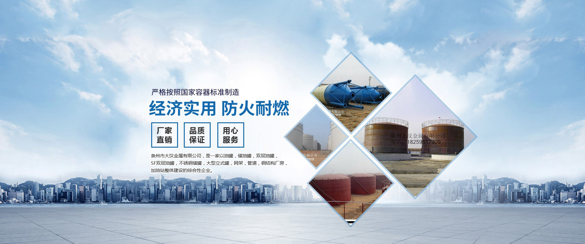 泉州市大漢金屬有限公司,是一家以油罐、儲油罐、雙層油罐、SF雙層油罐、不銹鋼儲罐、大型立式罐、網(wǎng)架、管道、鋼結(jié)構(gòu)廠房、加油站整體建設(shè)的綜合性企業(yè)。本公司以技術(shù)人員、施工經(jīng)驗(yàn)豐富的工程隊(duì)、自動化設(shè)備、擁有鋼結(jié)構(gòu)建筑、螺栓球網(wǎng)架設(shè)計(jì)安裝技術(shù)力量,嚴(yán)格按照國家容器標(biāo)準(zhǔn)制造,是一家產(chǎn)品開發(fā)并生產(chǎn)各種壓力容器和制造金屬結(jié)構(gòu)工程,化工石油工程安裝的大型企業(yè)。近多年來,以質(zhì)量穩(wěn)定、客戶至上、信譽(yù)為本,以科技求發(fā)展,贏得廣大客戶支持與信賴。